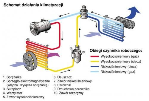 – Ponieważ w naturalny sposób (przez mikropory w gumie) z całkowicie sprawnego układu (przy 100% szczelności) ubywa rocznie nawet do 15% czynnika chłodniczego. – Czynnik chłodzący oprócz swojej podstawowej funkcji (chłodzenia), rozprowadza po układzie także olej w celu prawidłowego uszczelnienia połączeń i konserwacji układu, a także prawidłowego smarowania sprężarki. – Do uszkodzonego układu bardzo szybko dostaje się wilgoć co powoduje szybką korozję zwłaszcza elementów sprężarki. Podczas kontroli układu sprawdzana jest także szczelność. Ubytek w Układzie klimatyzacji połowy wymaganej przez producenta pojazdu ilości czynnika chłodzącego, powoduje utratę 75% wydajności chłodzenia powietrza. Wskutek tego już po trzech latach zdolność do schładzania wnętrza samochodu ulega znacznemu zmniejszeniu. Ponadto czynnik chłodzący w układzie klimatyzacji jest także nośnikiem oleju smarującego sprężarkę. Jeżeli w układzie jest za mało czynnika, do kompresora dociera zbyt mało oleju, to z kolei może doprowadzić do zatarcia sprężarki i w konsekwencji konieczna będzie jej wymiana lub naprawa, której cena wynosi zwykle kilka tysięcy złotych. Konsekwencji jakie niesie ze sobą awaria układu klimatyzacji można uniknąć, poddając układ klimatyzacji corocznemu przeglądowi. Ponadto czynnik chłodniczy absorbuje wilgoć z powietrza atmosferycznego poprzez materiał, z którego wykonane są części elastyczne układu klimatyzacji. Część wilgoci zatrzymuje osuszacz (filtr), ale jego sprawność zmniejsza się z biegiem czasu, po dwóch latach należy jego wkład wymienić na nowy. Jeśli filtr osuszacza nie jest wymieniany w regularnych odstępach czasu, wysoka zawartość wilgoci doprowadzi do korozji wszystkich elementów układu, a w następstwie do przyspieszonego zużycia i mechanicznych uszkodzeń części układu, a zwłaszcza sprężarki. Zawilgocony czynnik chłodzący może także doprowadzić do zalodzenia zaworu rozprężnego i w rezultacie do zatrzymania cyrkulacji czynnika w układzie, a to doprowadzi do nieodwracalnego uszkodzenia skraplacza i sprężarki.